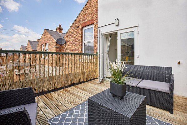 From here, you’ll have direct access to the spacious decked area at the rear of the property. With comfy outdoor seating, this is a great place to take in the fresh air and dine alfresco.