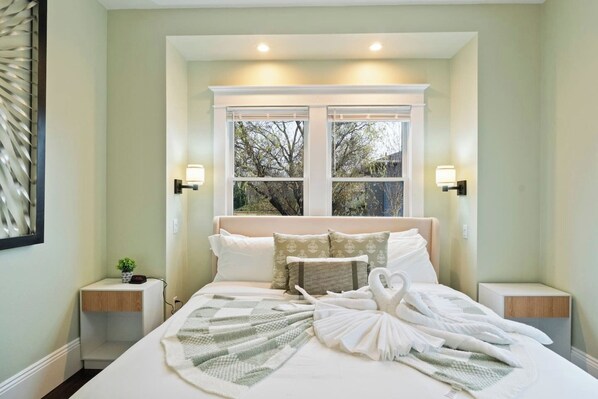 Inside, you’ll find cozy yet stylish living spaces, updated finishes, and all the amenities needed for a comfortable visit. The home retains its historic details while offering a fully equipped kitchen, modern bathrooms, and comfortable furnishings throughout.