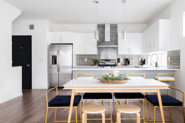 Relax with a movie night on the comfy sectional, cook a meal in the fully stocked kitchen, or sip your morning coffee on the rooftop. With high-end furnishings, hotel-grade bedding, and thoughtful amenities throughout, this home is designed for comfort and convenience.