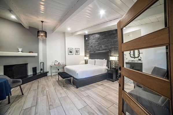 Photo gallery for Stylish Creekside Hideaway- Black and White Suite w/ Jacuzzi Tub & Wood Fire