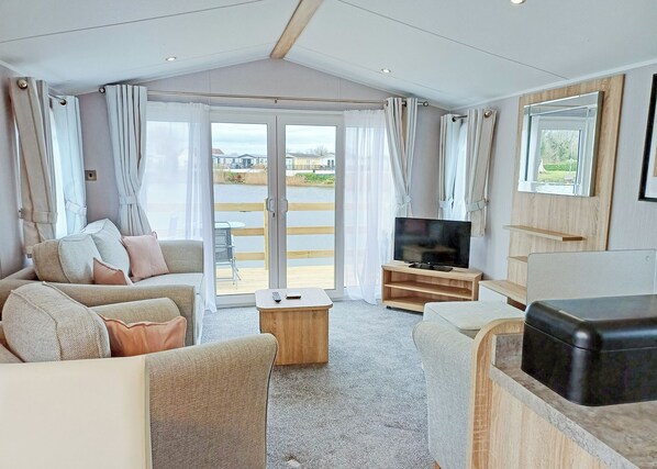 Living area - Comfortable caravan with one double with en suite shower room, and one twin. (Cawood, Selby)