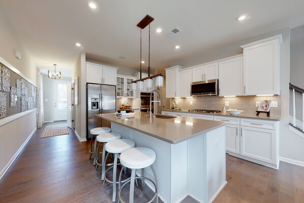 When you return, get cozy and watch a little TV, or opt for quiet conversation on the sectional in the loft upstairs. When bedtime calls, the kids will love the themed rooms upstairs - one for future golf pros and one for future cupcake aficionados - and the adults will love the en suite bathrooms in both of the other bedrooms.