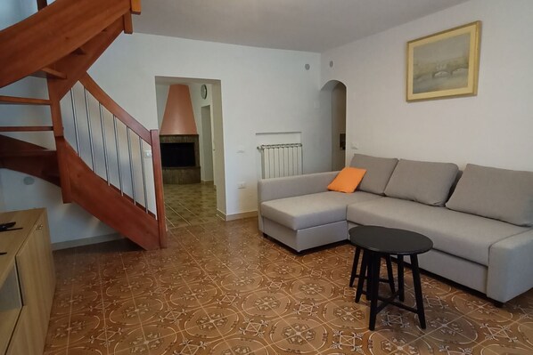 Description: Delightful heaven-earth. On the ground floor living room with double sofa bed, dining room - bathroom with shower - kitchen with access to the private porch equipped with table and chairs, well shaded - laundry room with sink and washing machine. On the first floor bedroom with double bed – second bedroom with double bed and delightful small terrace – full bathroom with tub