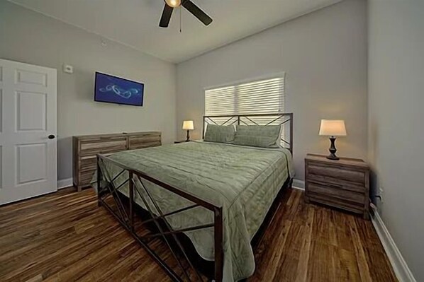 The main bedroom has a king bed with a smart tv. The second bedroom offers a bunk bed, with a twin over a double. The bathroom offers a shower/tub combo. All of your towels are provided. There is also a washer and dryer in the condo for your convenience.