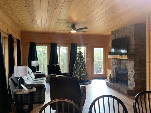 Each bedroom in this magnificent cabin is a private oasis, complete with its own bathroom and TV, ensuring everyone has their own personal sanctuary. But that's just the beginning of the excitement!
