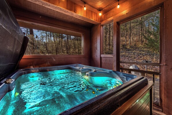 An arcade/games room, laundry facilities and a hot tub are just a few of the amenities provided at Views! Secluded Cabin, New Hot Tub, Fire Pit.