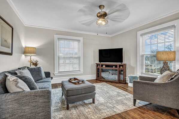 Nestled near Lake Michigan, this 2-bedroom apartment offers a fully equipped kitchen and cozy living room perfect for relaxation. With a smart TV and dining area, it's ideal for unwinding after a day of exploration or enjoying memorable meals.