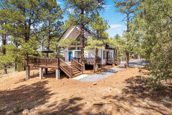Your mountain retreat awaits at this 3-bedroom cabin in Show Low. Nestled among the pines, guests can unwind in the cool, tranquil surroundings. With a king bed, 4 queen beds, and a full bed, there's plenty of space for everyone to relax. Enjoy the pleasant ambiance of the multiple bathrooms. A great place to call homebase while you're away, we hope you enjoy your stay.