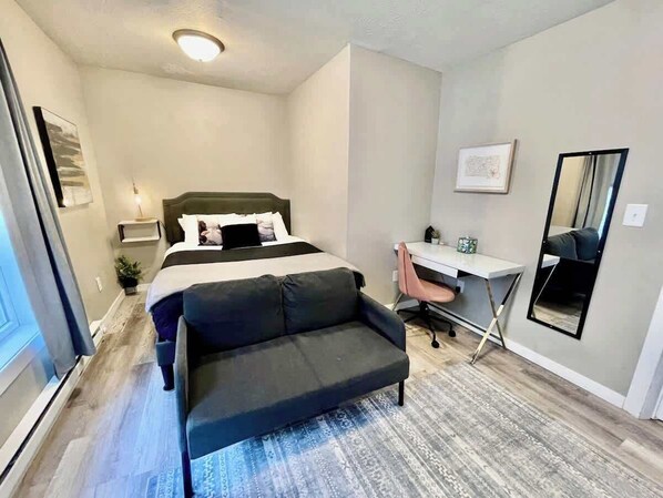 This unit has a classy vibe with two bedrooms, a full bathroom and a kitchen. Keep in mind this unit does not have a ture living space.