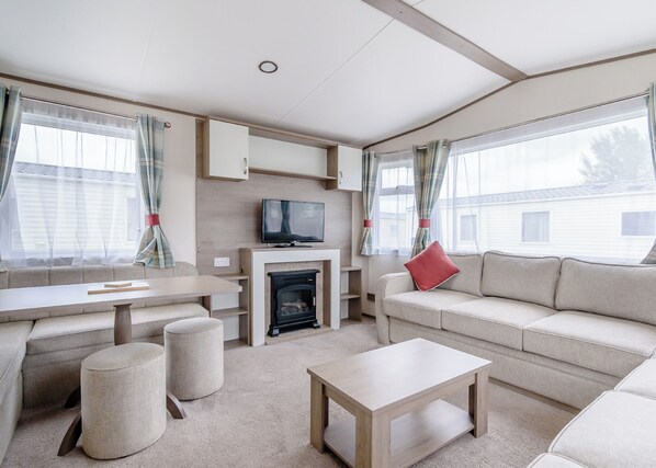 Living area - 12ft-wide very comfortable and spacious caravan with one double and two twin. (Roman Bank, Skegness)