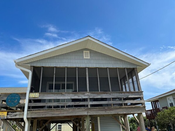 Step onto the screened-in deck, furnished for your comfort, and enjoy the coastal breeze. After a day at the beach, rinse off in the spacious private outdoor shower and changing area—no sandy floors here.