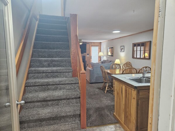 POWDERIDGE #42 - 2 BEDROOM TOWNHOUSE, 2.5 BATHS-BEDDING: MASTER Bedroom: Queen Bed, 1 Set of bunks, private bath; Bedroom #2: Queen Bed, 1 set of bunks: Sleeper Sofa in the Living room. to this cozy Townhouse, perfectly situated not far from the Powderidge Lift for effortless slope access. This spacious two-bedroom townhouse is ideal for families or small groups. Plenty of room for everyone to rest and recharge around the inviting wood-burning fireplace for a warm, relaxing evening together. Convenient, comfortable, and designed for memories.