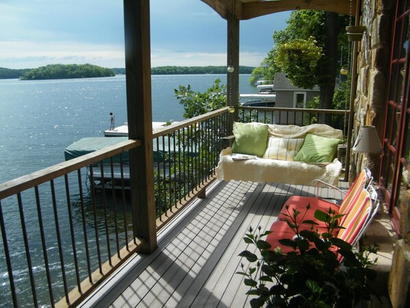 Get away to a lovely stone cottage that sits 6 feet from the shores of beautiful Lake Sylvia. The cottage has 2 bedrooms - -one overlooking the lake (wake up to beautiful sunrises). The other room has 2 sets of built-in bunk beds with their own reading lights (sleeps 4). Well equipped kitchen. Open floor plan with very comfortable furnishings. Enjoy dining or playing games in a cozy eating nook. The cottage also has a wonderful stone gas fireplace. Summertime enjoy the eating area above the boathouse or sitting on the deck porch swing with your morning coffee. Dock and boatlift and a canoe for your use. Many interesting local places to explore- quaint nearby towns with antique and vintage shops. Wonderful local restaurants. Wine tasting in Kimball and a new brewery in Annandale only minutes away.