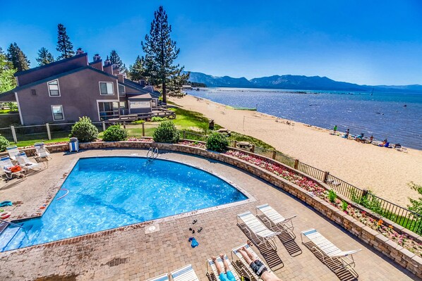A heated pool - An all-season getaway near Heavenly with private beach access & a lakefront pool (South Lake Tahoe)