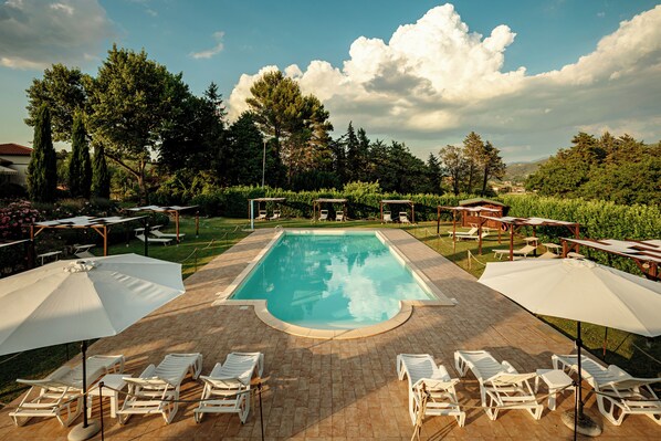 Cyclists discover Italy's countryside charm at this peaceful retreat where garden relaxation and poolside unwinding create lasting memories