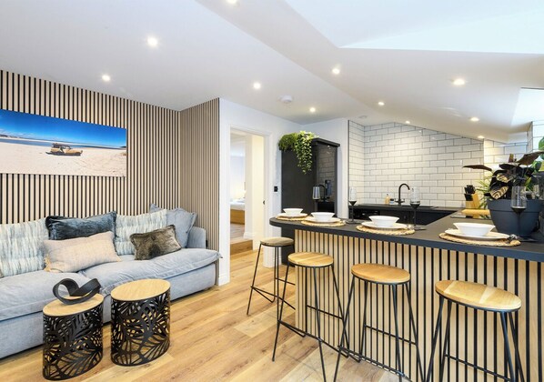 Welcome to St. Agnes and to “The Flat”. Newly refurbished and located in the heart of St. Agnes, our stylish and modern space offers the perfect blend of comfort and convenience. Whether you're here to surf the local waves, hike the scenic coastal trails, or simply relax and soak in the vibrant village atmosphere, this property is designed to provide an unforgettable stay. Immerse yourself in the charm of St. Agnes and make the most of your getaway in this chic, updated haven. Nestled in the highly sought-after Peterville Square of St. Agnes, this flat offers a prime location above The Greenroom cafe, making your morning coffee just steps away. Surrounded by two of the area's top pubs and the world-renowned Aggie Surf Shop, you'll also find yourself a brief stroll from Trevaunance Cove and the iconic Schooners bar, now operated by Verdant Brewery. Local shops are conveniently situated just a 5-minute walk up the village hill. Adjacent to The Taphouse bar and restaurant, one of the North Coast of Cornwall's premier dining and drinking establishments, this flat provides unparalleled convenience and a coveted location.While the flat's ideal proximity to The Taphouse (one of the top food and drink destinations on the North Coast of Cornwall) offers unmatched convenience, it's important to note that a vibrant atmosphere may be present in the evenings. However, the restaurant typically closes by 11pm, ensuring a peaceful night's rest.Some other important information about the flat:- Check in is 3pm- Check out is 11am- A digital door code will be provided upon check-in.- Please remove shoes before walking upstairs- Please make sure all wetsuits are hung outside after use- Fire blanket and Extinguisher can be found above the fridge Living Room: Samsung 55 inch Smart TV with Netflix and Disney Plus pre-loaded. Big, soft, super comfy 4 seater sofa with lots of cushions for ultimate chilling after a day at the beach! Breakfast bar with 4 Stools for dining or working on the laptop. Numerous Plug sockets with USB A and C Ports included, Bose Bluetooth Speaker, Kitchen: Samsung 70/30 Fridge Freezer Samsung Oven and Hob Samsung Microwave Beko Dishwasher KettleToaster An array of Kitchen Utensils
