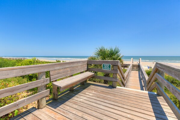 (Tier 1) Newly Remodeled 2 bedroom, 2 full bath Southeastern Exposure Flat. Also an East End Unit closest to the ocean and the pool. You enter on the first floor and won't need to worry about climbing stairs. This makes your stay more convenient without the need to carry beach equipment up and down stairs. It is furnished with a king bed in the master bedroom with wall mounted HDTV, two twin beds in the guest bedroom with HDTV, and a sleeper sofa in the living room with a large 65" HDTV. There is also a fireplace in the living room. All TV's include HD cable, Smart Boxes, and voice activated remotes. Fully equipped kitchen and updated bathrooms. Unit has a washer/dryer, internet access and an electric grill on the patio. At Summerhouse we have 4 temperature regulated pools to choose from on property making it comfortable to swim all year round! There are also four tennis courts, two racquetball courts and pickleball courts. We have two grilling areas and two playgrounds for the kids conveniently located at either end of the property. Our common area around the pools are covered with luscious well-maintained grass with a short walk to the beach. Our rental unit has a friendly front office staff and maintenance on site to help resolve any problem quickly if they should arise. We have a small book library and a gym available during normal business hours for your convenience.