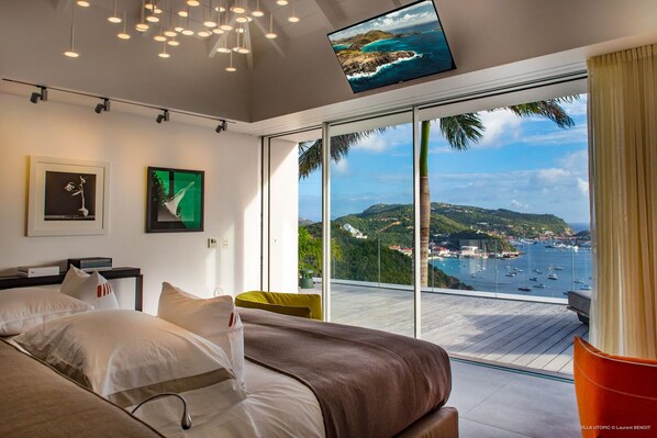Perched in the heights of Corossol, Utopic offers a serene retreat with an infinity swimming pool overlooking the Caribbean sea. Spacious and private, this villa welcomes groups of friends looking for a dream place to stay in St. Barths. Enjoy movie nights on a retractable screen, call upon a private chef for events or relax in the glazed living room with breathtaking views.