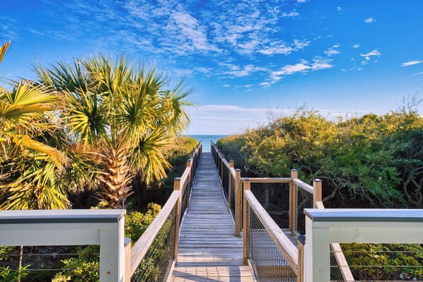 Beachfront Living + Outdoor Amenities Enjoy direct private boardwalk access to the beach—just steps from the sand and Gulf waters. Relax by your 17×30 private pool with sundeck (optional heat available) or unwind in the hot tub after a day at the beach. Expansive outdoor and indoor spaces make it easy for your entire group to gather, relax, and enjoy island life.
