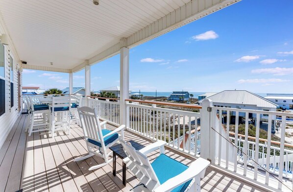 Home includes use of the elevator from the ground level to the top floor which makes unpacking the car a breeze. Washer and dryer are conveniently located on the main level along with a half bathroom. Large open, well-equipped gourmet kitchen with granite countertops, stainless steel refrigerator and microwave. A seated bar and large Keurig coffee machine is also available for your use. Family room has plenty of seating to view the beautiful sunrise and sunset every day. The walk over to the beach is a very short walk and can be clearly seen from the decks. Outdoors offers spacious tri-level covered front and rear decks with great views of the Gulf. Float in the pool or spa to cool down after a day in the sun or relaxing on the beach, or relax in the shade in our new covered outdoor seating area with TV.