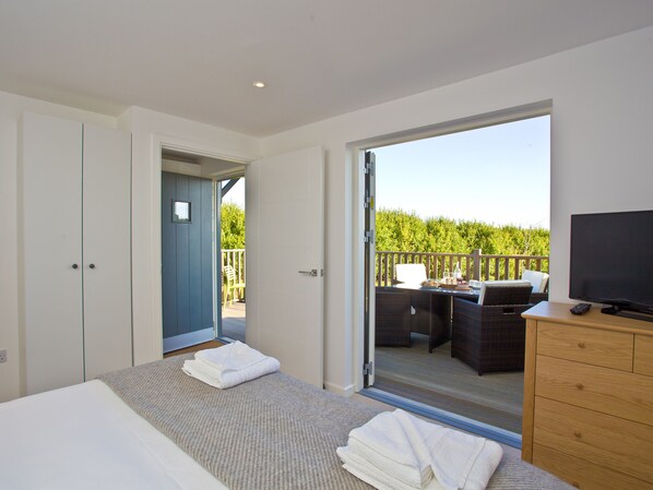 Bedroom: Kingsize (5ft) Bed, Freeview TV, French Doors Leading To Decked Area Ensuite: Cubicle Shower, Heated Towel Rail, Toilet