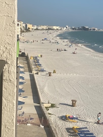 4th floor balcony was great for watching gulf waves. Saw dolphins and dive bombing pelicans. Even saw a manatee unknowingly swimming slowly right past swimmers. Highly recommend this roomy condo. Had an awesome time!
