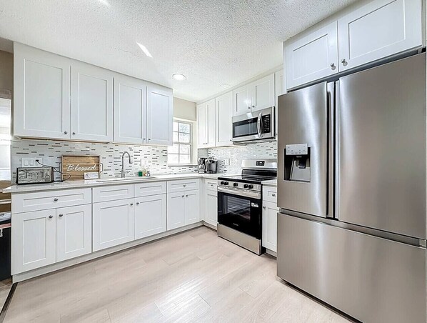 Welcome to Sunny Shores Getaway, a fully renovated vacation retreat offering over 2,800 sq. ft. of modern comfort and coastal charm. Perfect for large families, reunions, or group getaways, this spacious home features seven bedrooms, four bathrooms, and room for everyone to relax and recharge. Enjoy a bright, open layout with stylish décor, comfortable furnishings, and a brand-new kitchen with stainless steel appliances and quartz countertops—ideal for cooking and gathering. Step outside to unwi