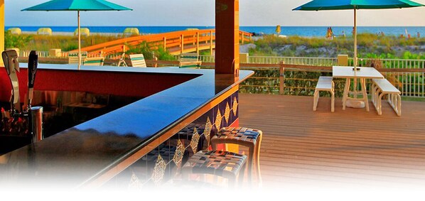 Sunset Vistas provides a full resort experience with direct access to the white sand beaches of the Gulf of Mexico. Guests can enjoy a year-round heated pool, two hot tubs, a zero-entry kiddie pool, an on-site café and beach bar, and beautifully maintained tropical grounds.