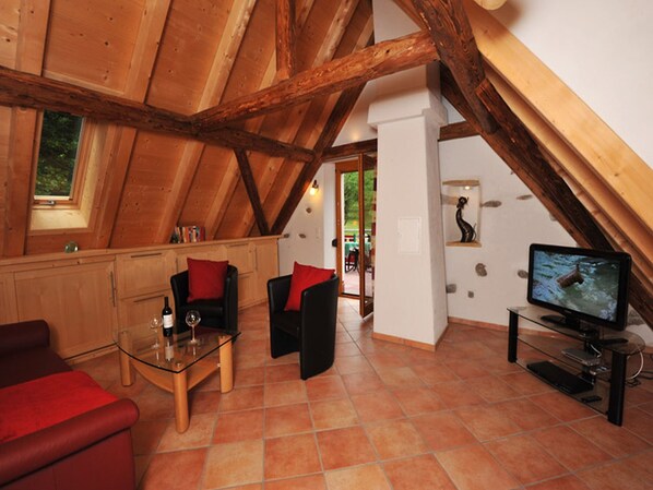 On request, you can use the Finnish sauna free of charge. You heat it yourself with wood and enjoy the warmth as you wish. Inside, a fireplace with a glass window creates a cozy atmosphere, which you can light as needed—especially in the winter months after a walk, paired with a good local wine. Firewood is provided free of charge. In winter, the outdoor whirlpool in front of the house is a special highlight. On request, you can use this extra for an additional fee.