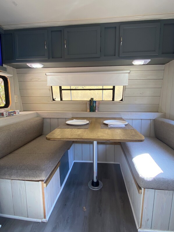 Come and enjoy the simple life in our adorable camper. The L & R Bunkhouse, sleeps 3, with a main bed and dinette table that converts to a sleeper. The dinette bed is fine for 2 small children or 1 adult. Has it's own charm, small and cozy. Surrounded by beautiful woods, our goats, and alpacas all allows you to stay, enjoy nature and see for yourself what small farming is about and why we love it. Wake up alongside of our crew of Goatie Goats, Packie Alpacas who love people, and take in the sunrises and sunsets. Enjoy the night sitting around the fire pit. Enjoy hanging out and getting to know the animals, and just relaxing. Taking a break from normal life.