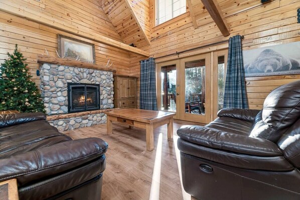 The cabin is suitable for up to eight guests looking for a cozy mountain getaway. The layout has been specifically designed to inspire relaxation and interaction. It features two bathrooms, three bedrooms, and one lofted bedroom. The spacious living room, dining, and kitchen area gives guests plenty of space to unwind. Relax with your morning cup of coffee on the wrap around deck.