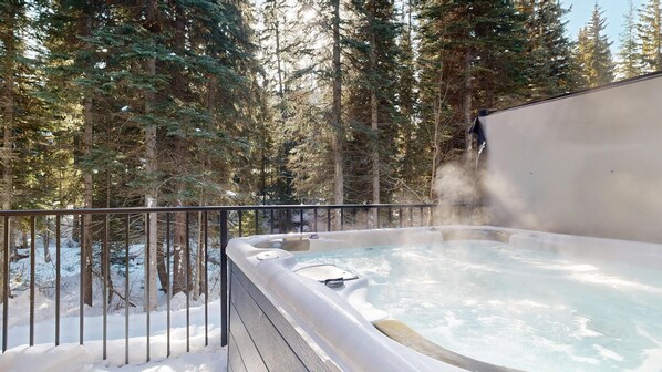 Outdoor spa tub - Luxury Villagewalk Townhouse in Sun Peaks (Sun Peaks)