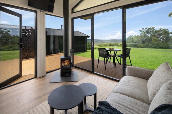 Relax by the indoor fireplace with firewood supplied, or step outside to your private fire pit for a true retreat experience, complete with marshmallows for cosy evenings under the stars. Enjoy outdoor cooking with your fully equipped Weber BBQ, perfect for laid-back meals in the fresh air, while coffee and tea is provided to start your mornings right.