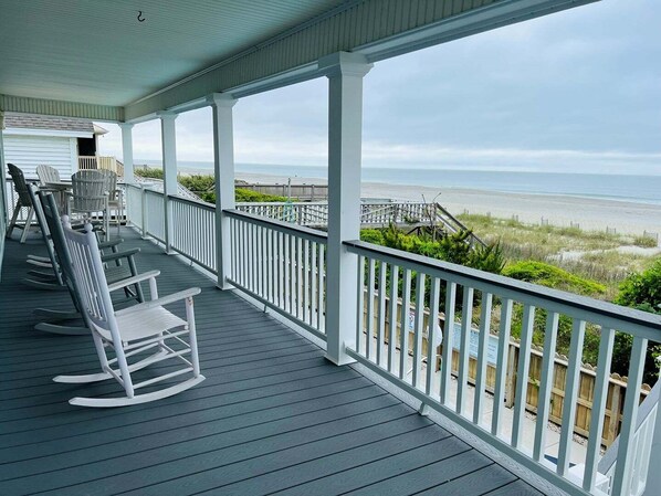 Terrace/patio - Oceanfront 5BR beach house with pool in Holden Beach, perfect for 12 guests. (Holden Beach)
