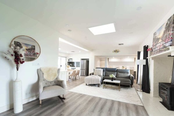 🛋 Living & Dining --> Designed for comfort and relaxation: --> Spacious living room with an extra-large leather recliner sofa --> Beautiful oversized rocking chair — one of the coziest spots in the house --> Elegant leather dining table for shared meals --> Large study desk for remote work or study --> Iron and ironing board provided --> Ducted air-conditioning for your comfort --> Netflix for your entertainment