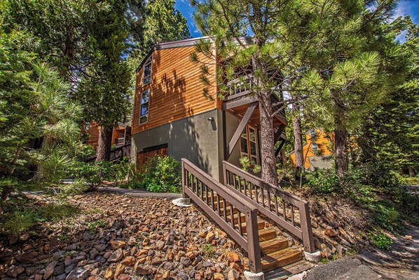 The home is just outside of town, making it easy to bike into Tahoe City and Skylandia Beach in summer, or drive a short distance to multiple ski resorts in winter.