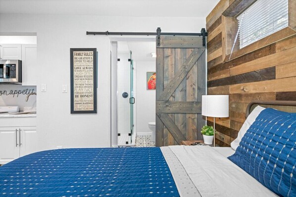Our overall stay was very pleasant. There were some small issues but overall the place was cute, clean, quiet, in a nice neighborhood and close to restaurants, markets, etc. As for negatives: We specifically booked this listing because it had a regular sized stove and fridge and we would be able to cook there. We would have cooked but since there were no cooking utensils (spatula, anything to stir with, etc) and no oven tray or pan, that made it very difficult to do so. We ended up not ever cooking and instead utilized the many great local restaurants in the area, so the location came in handy although we didn’t budget for as many meals out. Another negative was the bathroom door. While the sliding barn door is very aesthetically pleasing, the fact that it hangs out a couple inches away from the wall and also isn’t large enough to fully cover the bathroom doorway was a problem. When the door is all the way “closed” you can easily see inside from both sides and don’t really get any privacy being that it’s right next to the bed/kitchen/living space. Fine for just one person but for two who would like to have a little privacy, it’s not ideal. All of that being said, I would still recommend this listing, I would just give whomever was booking that heads up.