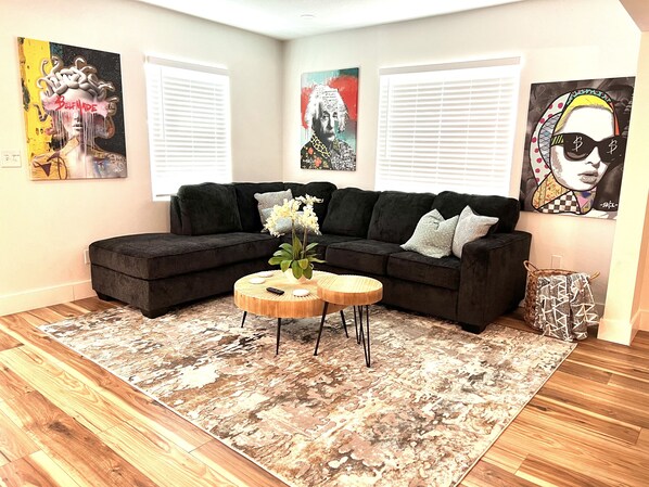 Tampa Villa creates a true Tampa experience, where local art and an open layout come together to make it perfect for friends and family to gather. Unwind in the private backyard with pingpong, corn hole, or Giant Jenga games; grill up some fun on the BBQ or relax by Edison lights in the evenings.