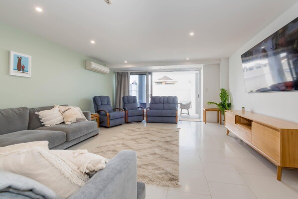 With a fully-walled outside courtyard that captures the morning sun, massive 80" TV, fully stocked kitchen, modern layout and super comfortable mattresses this property will suit guests in any weather at any time of the year!
