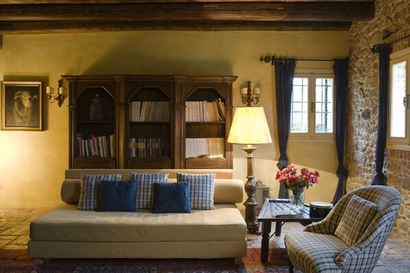 A staircase leads to the second floor, where there are 4 bedrooms, 2 bathrooms (with shower) and a very spacious study-library. The master bedroom has a four-poster bed; two bedrooms have two single beds each (on request it is possible making them as double bed), and one is a single bedroom (cozy, but small).