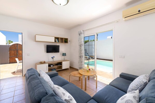 If you're after a central location, look no further. Villa Susie is a delightful 4 bedroom property located just a 10 minute walk from the sandy Playa Grande Beach and main Strip of Puerto del Carmen. Here you'll find a good number of shops, bars and restaurants. The charming old town and harbour are around 20 minutes' walk away. The villa has a private swimming pool, alfresco dining area and pleasant interiors. Air conditioning/heating in the bedrooms and lounge, a heated pool and WiFi are included.