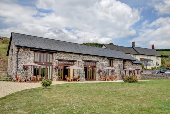 Nestling in the midst of the most beautiful Devon Countryside, on the fringes of Exmoor National Park, you will find Marwoods Farm. Tucked down a single track partly unmade lane in the tiny hamlet of Cove and with stunning far reaching views over the lush hills and valleys, this working farm really is a perfect country retreat. The little town of Bampton is just 3 miles away with a lovely choice of shops pubs and restaurants, while Tiverton, a ten minute drive, offers a wide selection of attractions including the twelfth century Tiverton Castle and Bickleigh Mill, located on the River Exe and offering trout lakes and fishing with picnic area, farm shops, waterside tea garden and much more. Just a few miles to the north, Exmoor National Park has something for everyone, walking, climbing, cycling or just enjoying a cream tea in the coastal resort of Lynmouth where spectacular cliffs plunge down to the sea. Adjacent to the owners own home we are delighted to offer four high quality stone built cottages, recently converted from the original farm buildings, using underfloor heating and with excellent facilities. Overlooking the shared front lawned garden, each cottage has an individual patio with garden furniture. A special treat is the outdoor shared Hot tub.