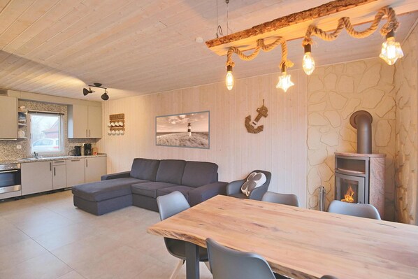 TV, fireplace - Holz-ferienhaus "katingsglück" in Kating für bis zu 6 Personen (Kating)