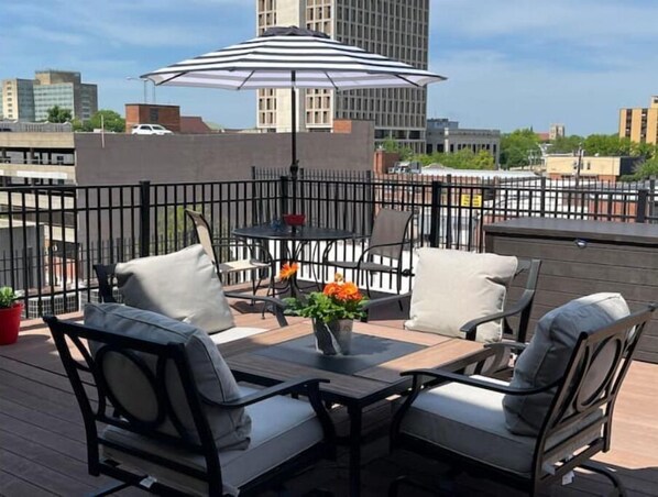 Incredible city skyline, sunsets and amazing Capital views on the huge private deck! There is a 2-person swing, a comfortable conversation area, and outdoor dining table with umbrella. Only Loft guests have access to the deck.