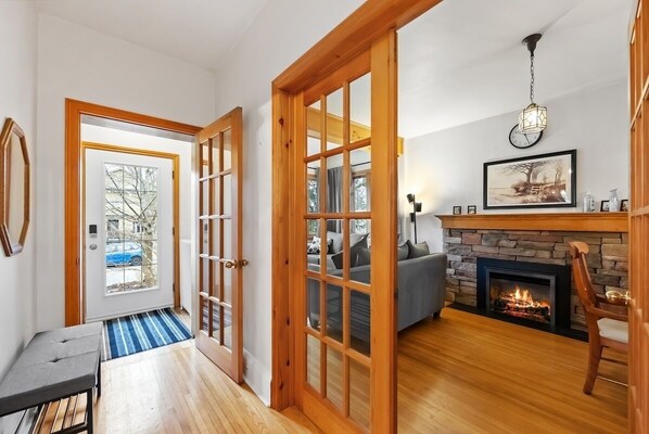 We did not receive check-in instructions upon arrival and had to delay entry. Overall the house is cute and well supplied. The beds were not comfortable. With frigid temps outside, we were quite cold, even after hiking the thermostat. No extra blankets were provided other than what was on the bed. No instructions given for fireplace and we were unable to use it. As the house is not renovated, there are minimal outlets available. Trash outside was overflowing from precious occupants and no instructions given to bring bins to the street for pick-up. Yard maintenance was sorely needed. Off-street parking was adequate.