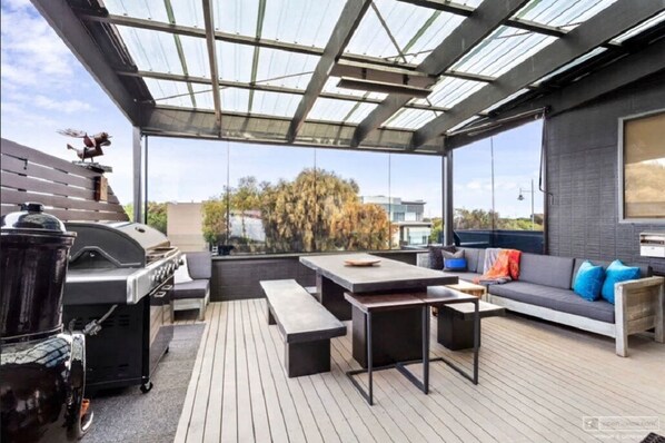 Outdoor dining - 4CHP The Sands Torquay .. Across the road from Whites Beach  Beachfront  LUXURY  (Torquay)