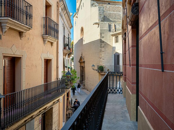 AT137 Abadia: A charming apartment located in the historic center of Torredembarra. It is a first floor without elevator, renovated, but maintaining the charm of an old home with its beams on the high ceilings and high windows (double glass). It has a living room with access to a balcony with views of the beautiful streets of the historic center of the town. There is also a very well-equipped kitchenette (including dishwasher), 3 bedrooms (two with a double bed and one with a single bed), a bathroom with a bathtub and a toilet. For more comfort the apartment is equipped with air conditioning in the dining room and in the 3 bedrooms. It has a private parking space in an underground parking lot that is 200m away (3 min walk). All services are very close and in 15 minutes walk you reach La Paella beach (850m) Group reservations made up of young people between the ages of 16 and 26 are not accepted.