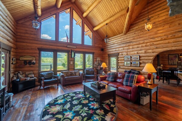 Secluded waterfront log home offers a peaceful mountain lake escape where wildlife viewing and natural tranquility create a true Montana getaway