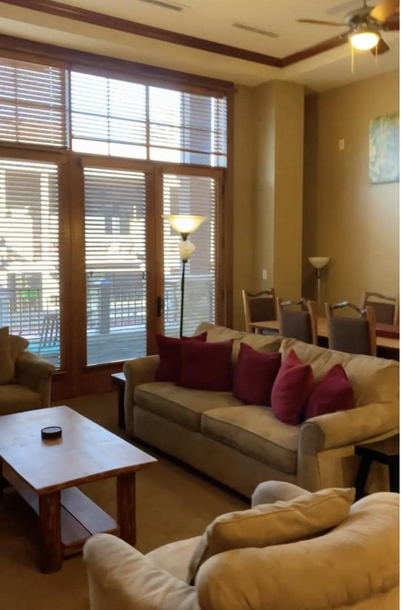 Enjoyed the unit! Clean, comfortable, quiet. Large windows with lots of light! Easy check in. Property manager provided quick responses to my questions. A home away from home! Kitchen well stocked with dishes, pans and utensils. Thanks for the wine and the coffee! Up to date appliances. Washer and dryer was great to have after a day on the lake. Would stay here again! We slept good! Comfortable beds! We are country folk so we sleep with only the moonlight. A suggestion for this unit would be bedroom curtains to cover the beautiful wood blinds at night, as the resort is lit all night with string lights and low accent lighting. Thank you! We had a great stay!