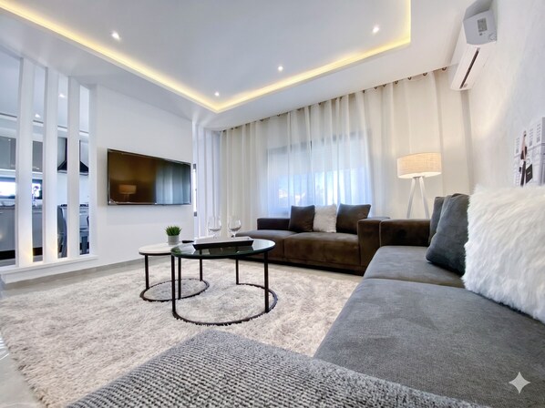 All guest rooms at Luxurious 5-Bedroom Apartment in La Marsa, Tunisia include comforts, such as separate dining areas, as well as